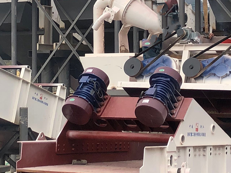 ZJS型直線振動(dòng)篩是采用雙振動(dòng)電機(jī)驅(qū)動(dòng),當(dāng)兩臺(tái)振動(dòng)電機(jī)做同步、反缶旋轉(zhuǎn)時(shí),其偏心塊所產(chǎn)生的激振力在平行于電機(jī)軸線的方向相互抵消,在垂直于電機(jī)軸的方向疊為一合力,因此篩機(jī)的運(yùn)動(dòng)軌跡為一直線。其兩電機(jī)軸相對(duì)篩面有一傾角,在激振力和物料自重力的合力作用下,物料在篩面上被拋起跳躍式向前作直線運(yùn)動(dòng),對(duì)中、細(xì)粒度物料進(jìn)行干濕式篩分、脫水、脫介、脫泥。