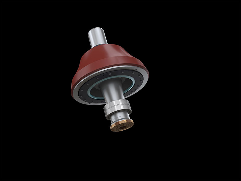 RC系列單缸液壓圓錐式破碎機(jī)工作過程中,電動(dòng)機(jī)通過傳動(dòng)裝置帶動(dòng)偏心套旋轉(zhuǎn),動(dòng)錐在偏心軸套的迫動(dòng)下做旋轉(zhuǎn)擺動(dòng),動(dòng)錐靠近定錐的區(qū)段即成為破碎腔,物料受到動(dòng)錐和定錐的多次擠壓和撞擊而破碎。動(dòng)錐離開該區(qū)段時(shí),該處已破碎至要求粒度的物料在自身重力作用下下落,從錐底排出。排料口的大小需要靠底部一個(gè)液壓缸的升降來調(diào)節(jié)。